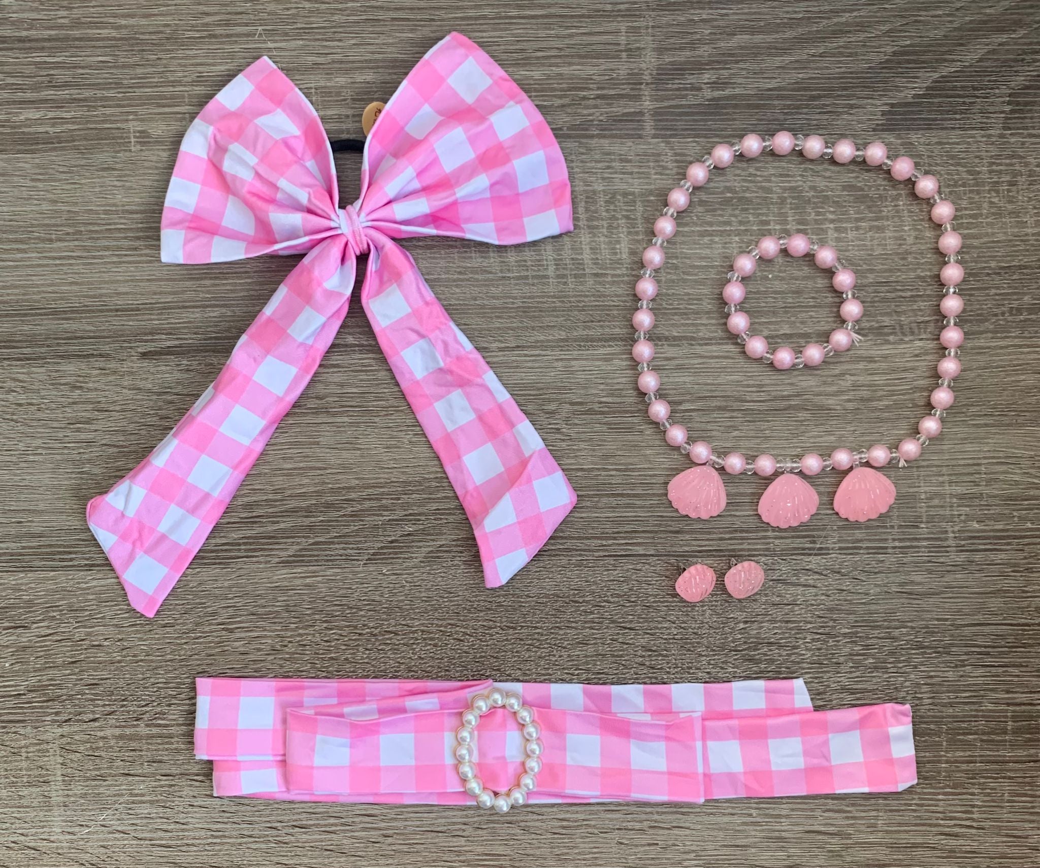 Sieht unbenutzt aus, mit Etikett, ohne Originalverpackung. Prinzessin Rosa Plaid Kostüm für Kinder, 130 (Länge des Rocks 62 cm, Büste 64 cm, Taille 59 cm, vorgeschlagene Höhe 125-135 cm).
