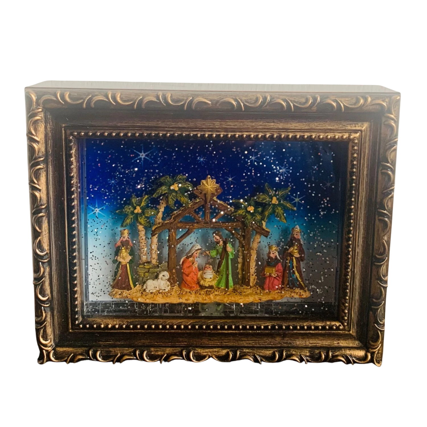 Konstsmide LED Bilderrahmen mit Krippe, wassergefüllt, 24,5x5,5x19,5cm.