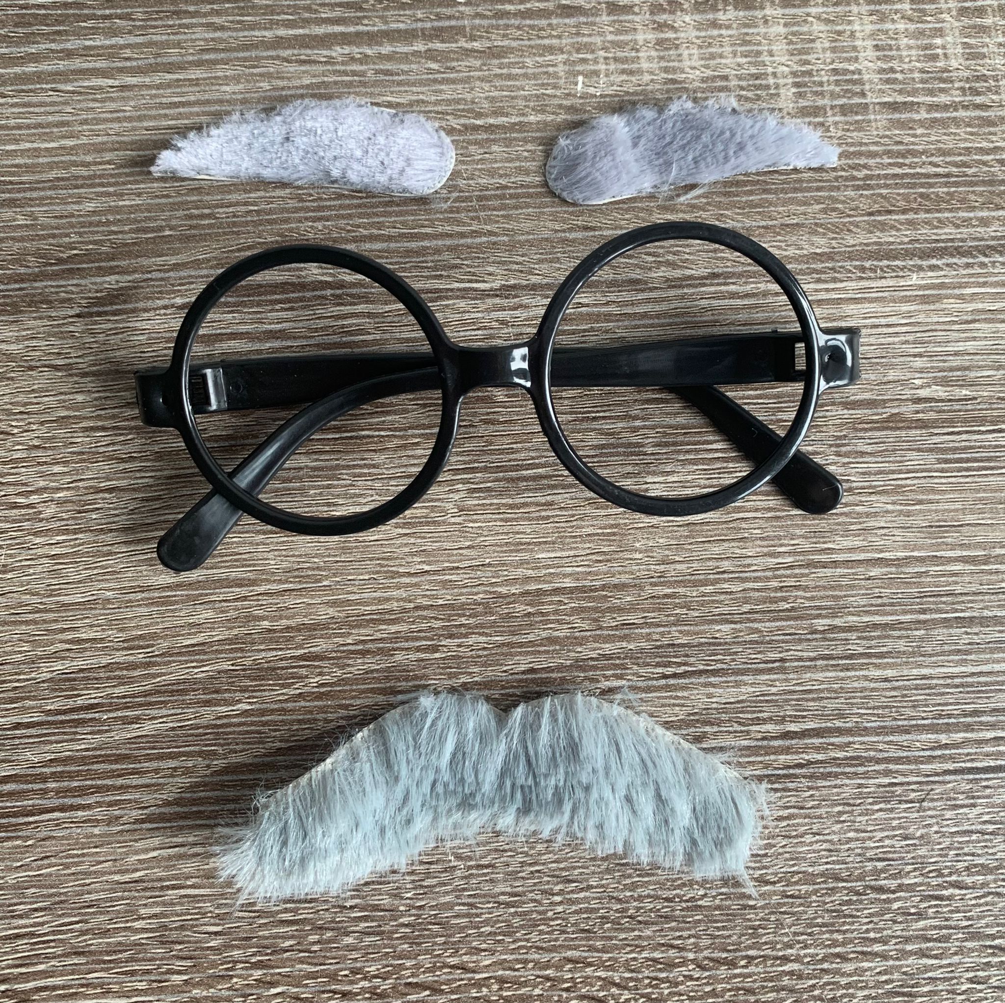 Paket enthält: Oberteil, Mütze, Brille, Bart, Augenbrauen.