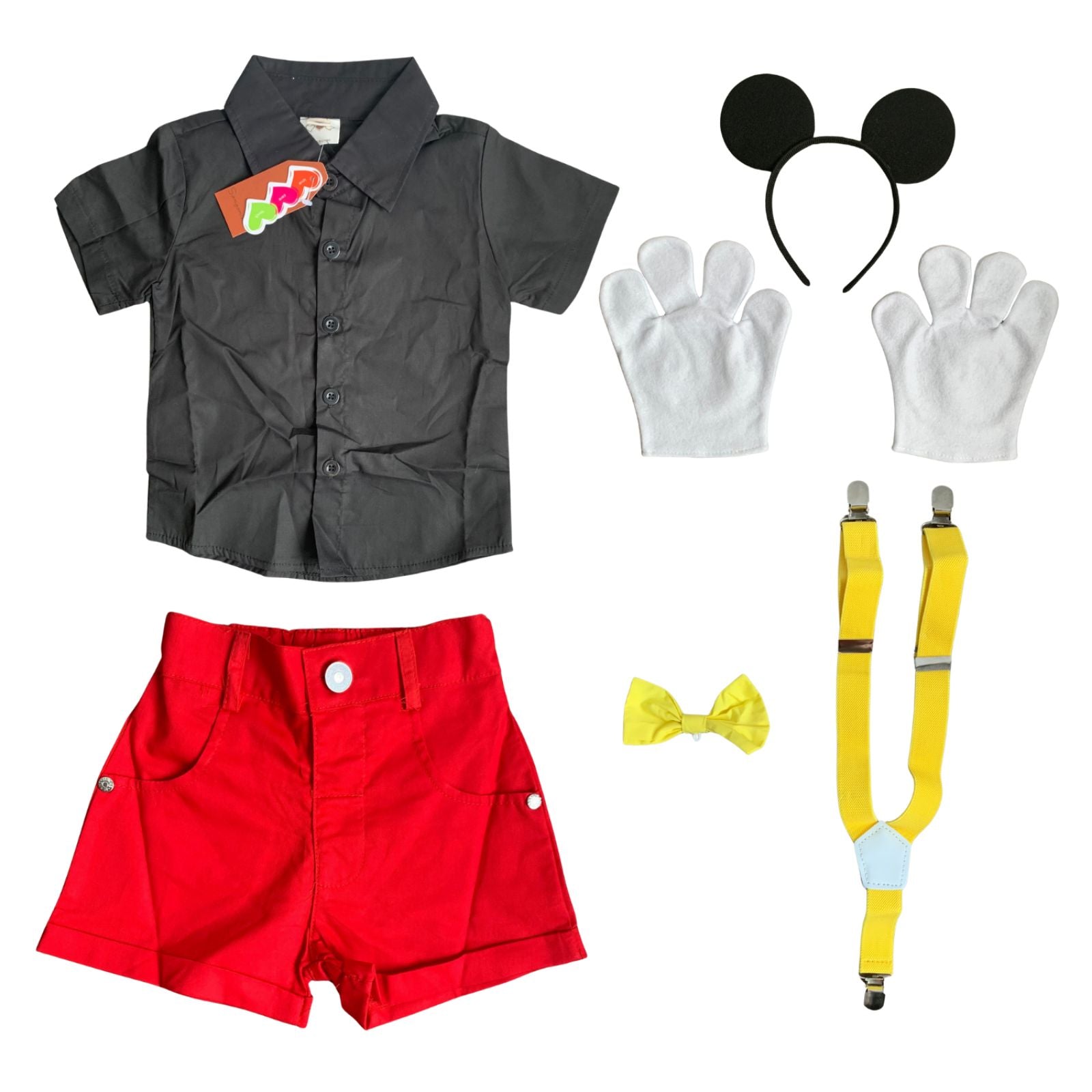 Kostüm Mickey Mouse, Maus Ohren Haarreif und Handschuhe, Lito Angels, 80 (Brustumfang 57 cm, Schulterumfang 23,5 cm, Taillenumfang der Hose 42-51 cm, Hemdlänge 37 cm, Hosenlänge 21,5 cm).