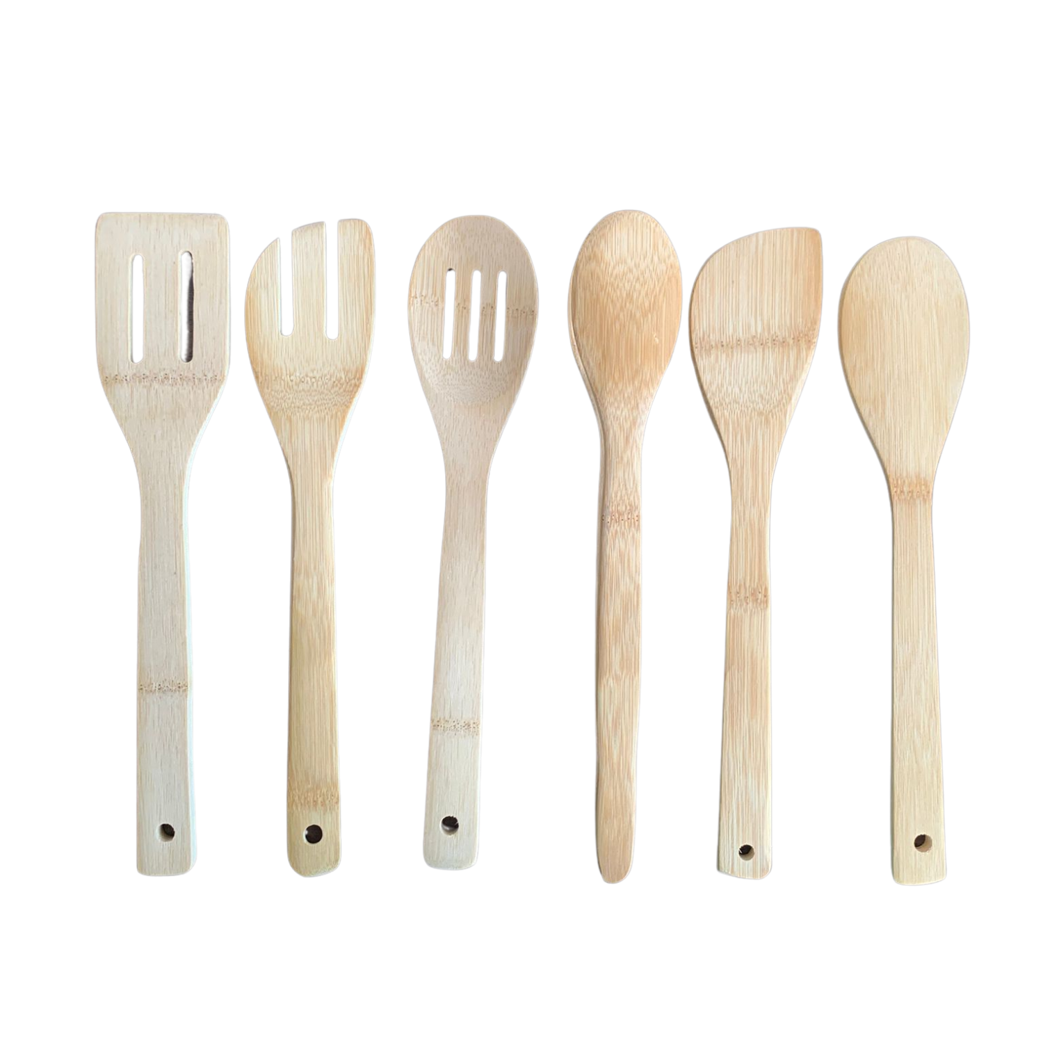 Küchenhelfer Set Bambus 7-teilig, Kochlöffel, Relaxdays, 30 cm.
