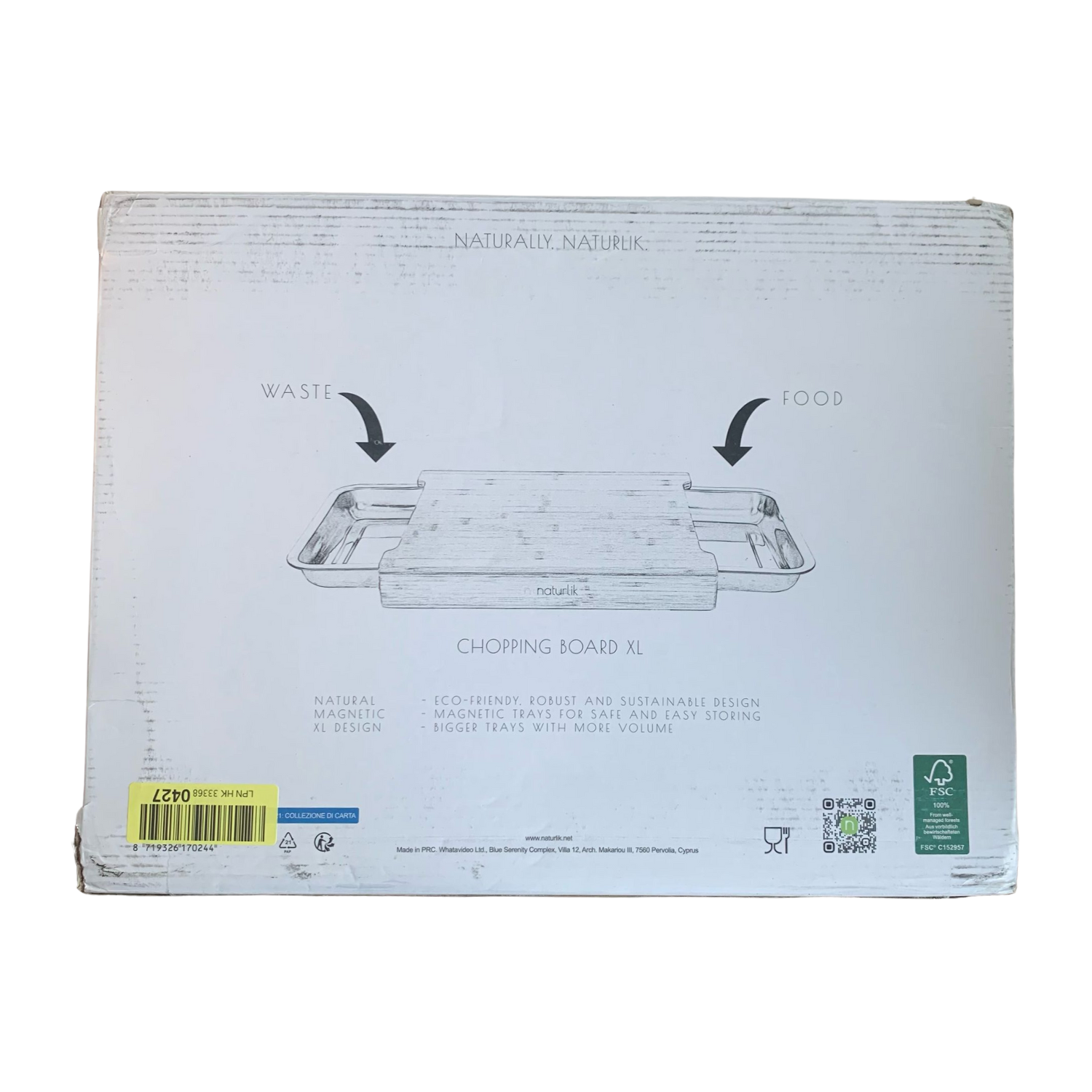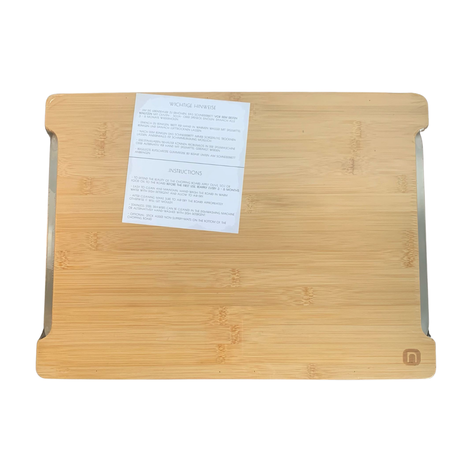 Schneidebrett naturlik XL mit magnetischen Auffangschalen.