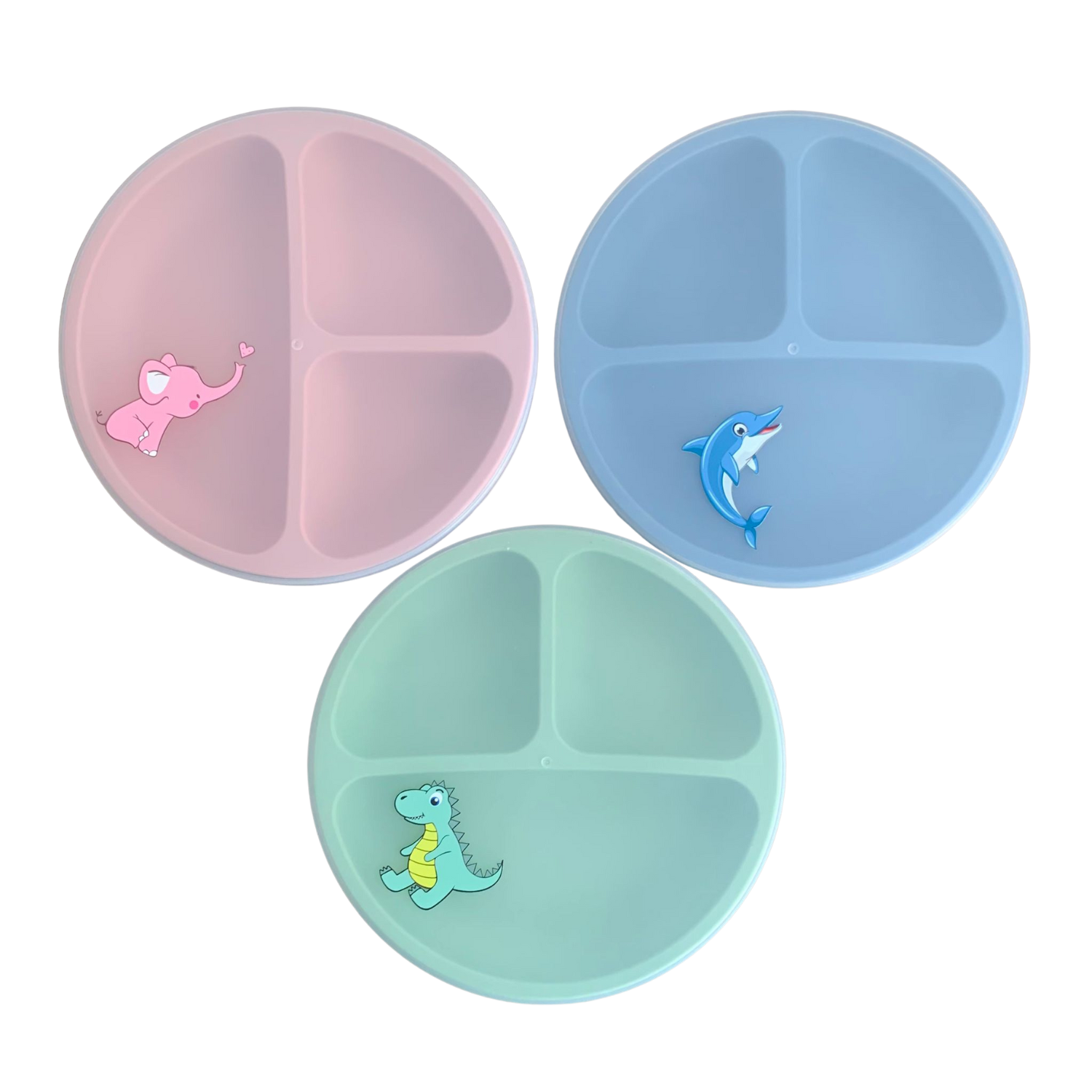 Silikon Baby Teller mit Saugnapf und Deckeln, Geteilte Babyteller, NesriToy, 3 Stück.